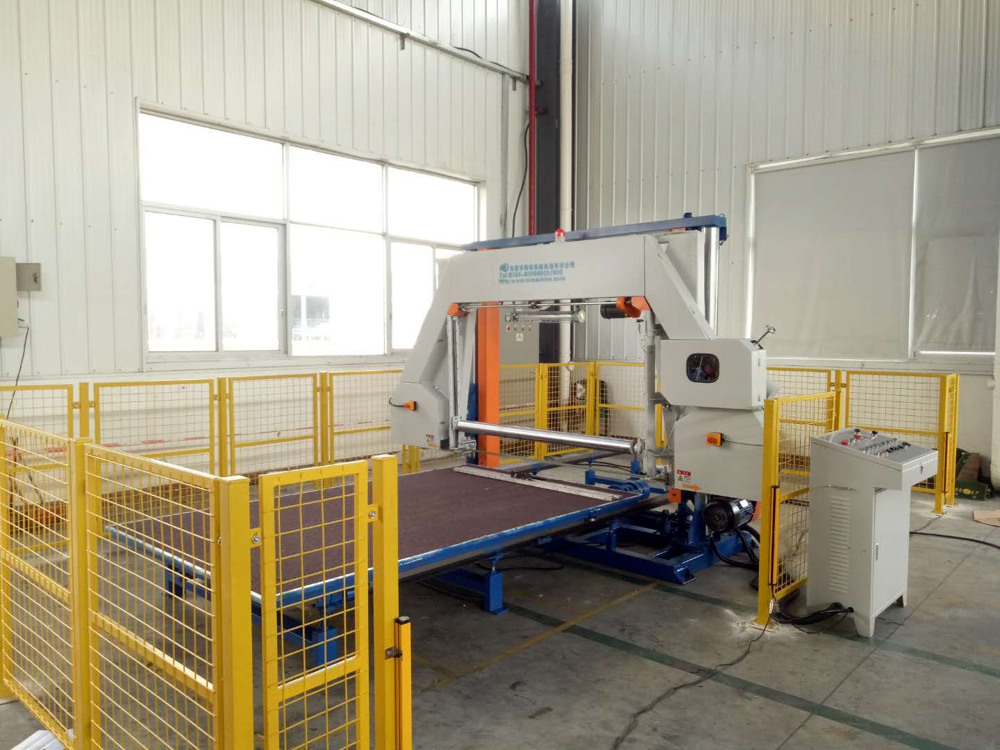 صُممت ماكينة الحز بالسكك الحديدية لتقطيع كتل الرغوة الطويلة (على سبيل المثال، 30 مترًا أو 50 مترًا أو 100 متر) إلى صفائح رقيقة، ولفها على شكل لفائف أثناء عملية القطع. يمكن دحرجتها يدويًا أو آليًا. يتم تثبيت منضدة العمل لماكينة الحز بالسكك الحديدية، وتتحرك الماكينة الرئيسية ذهابًا وإيابًا على طول المسار لإجراء عملية القطع.