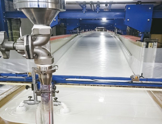Les blocs de mousse sont découpés avec précision après le durcissement, ce qui permet de rationaliser le processus de production dans un souci d'efficacité et de cohérence. Cela garantit une utilisation optimale des matériaux et une production de haute qualité pour diverses applications industrielles.