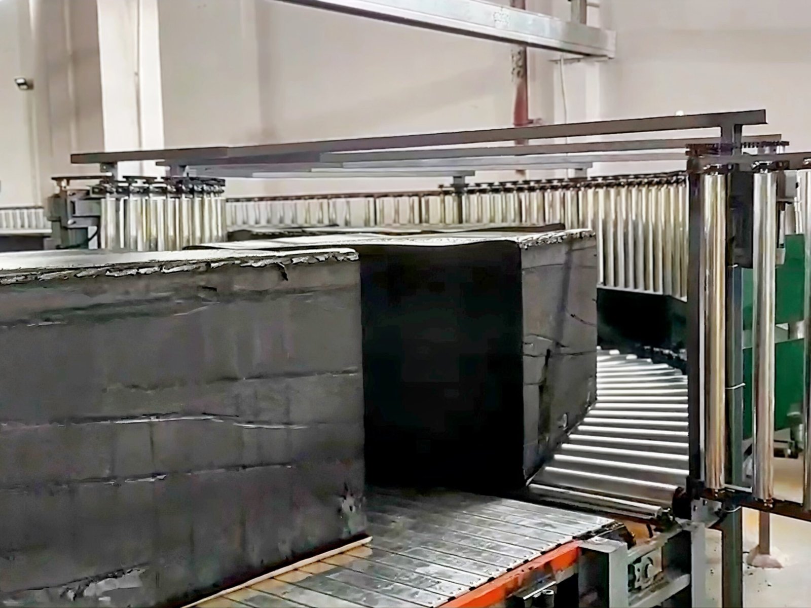 O design suporta cargas contínuas de blocos de espuma; os limites de peso são verificados durante o planeamento do layout.