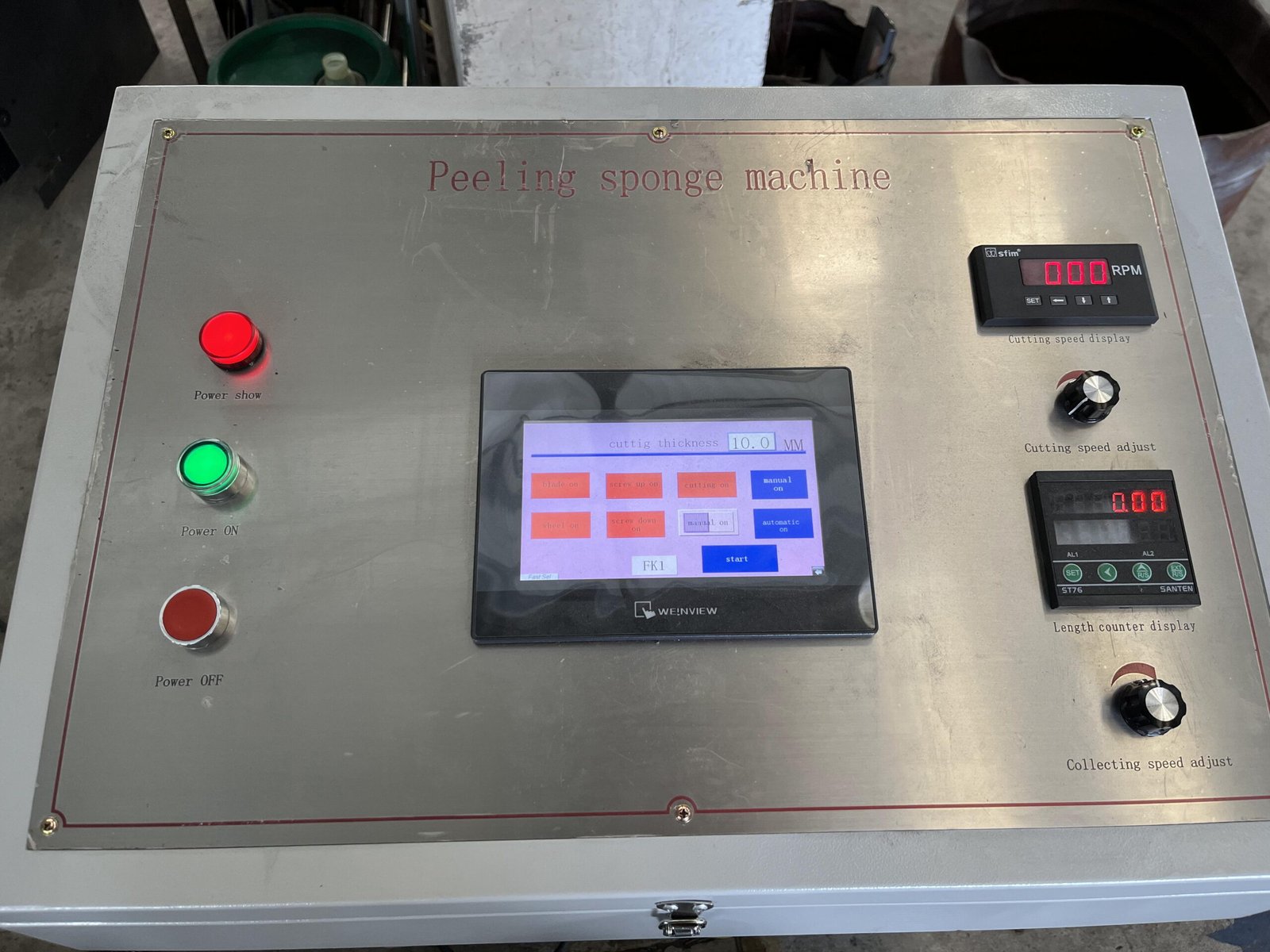 A máquina pode descascar folhas de espuma tão finas como 2 mm e até 100 mm de espessura. A espessura é facilmente ajustável através do painel de controlo.